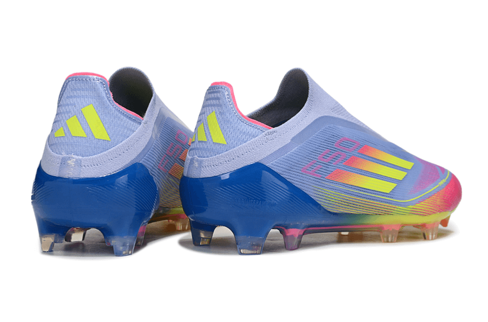 Chuteira Adidas F50 LL FG - Roxa, Rosa e Verde OLYMPIC STORE foi desenvolvida para jogadores que procuram velocidade máxima, leveza e desempenho de alto nível em campos de relva natural. Este modelo representa o futebol moderno e explosivo, sendo ideal para atletas que valorizam aceleração, mudanças rápidas de direcção e capacidade de desequilíbrio em situações ofensivas.