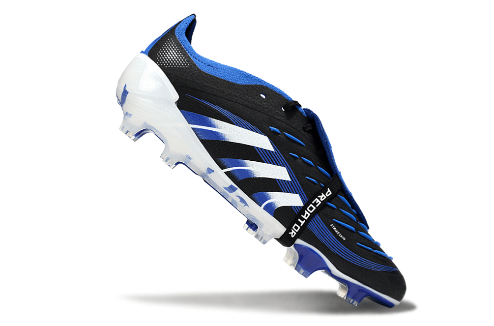 A Chuteira Adidas Predator Elite FG Tongue Preta e Azul combina design arrojado com língua tradicional e tecnologia de ponta para máximo desempenho em campo. Esta chuteira de campo representa potência, velocidade e controle absoluto para jogadores que buscam se destacar em gramados naturais com estilo marcante.