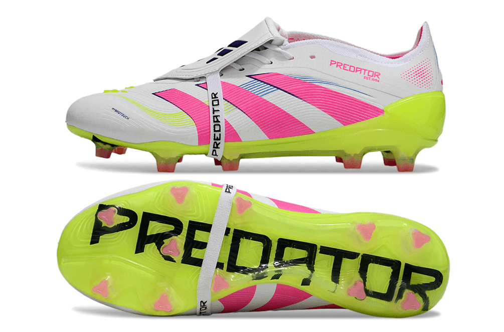 Chuteira Adidas Predator Elite FG Tongue Branca e Rosa OLYMPIC STORE foi desenvolvida para jogadores que procuram controlo absoluto, potência e precisão em campos de relva natural. Este modelo foi pensado para o futebol moderno, sendo ideal para atletas que gostam de comandar o jogo, assumir a iniciativa e influenciar cada lance com confiança e eficácia.