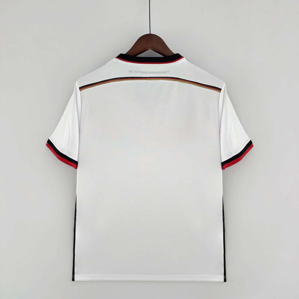 Camisola Alemanha Home 2014 Retro Olympic Store OLYMPIC STORE é uma peça icónica que celebra um dos momentos mais marcantes da história do futebol mundial. Inspirada na camisola utilizada pela selecção alemã no Mundial de 2014, esta versão retro presta homenagem a uma equipa lendária, combinando tradição, orgulho nacional e um design intemporal muito apreciado por adeptos e coleccionadores.