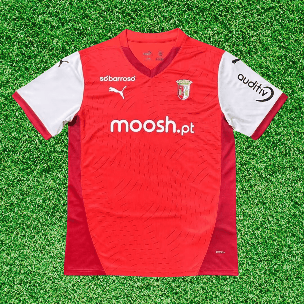 Camisola SC Braga home 24/25 Vermelho OLYMPIC STORE foi criada para adeptos que vivem o clube com orgulho e procuram conforto, identidade e qualidade no dia a dia. Este modelo oficial para a época 2024/25 representa a tradição e a ambição do SC Braga, mantendo o emblemático vermelho que simboliza garra, paixão e ligação profunda aos Gverreiros do Minho.