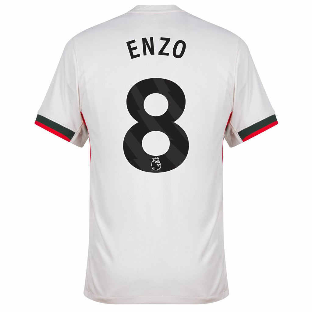 Chelsea away 25/26 #8 Enzo Branco OLYMPIC STORE é a camisola ideal para adeptos que procuram autenticidade, estilo moderno e ligação directa ao futebol de alto nível. Inspirada no equipamento alternativo utilizado na época 2025/2026, esta camisola destaca-se pelo seu visual elegante em branco e pela referência ao número 8, associado a um jogador de grande influência no meio-campo.