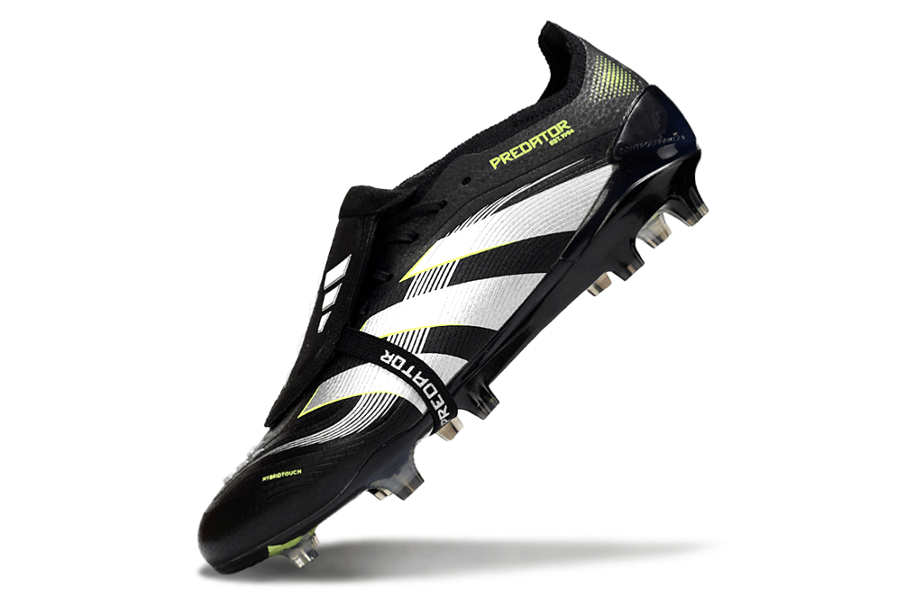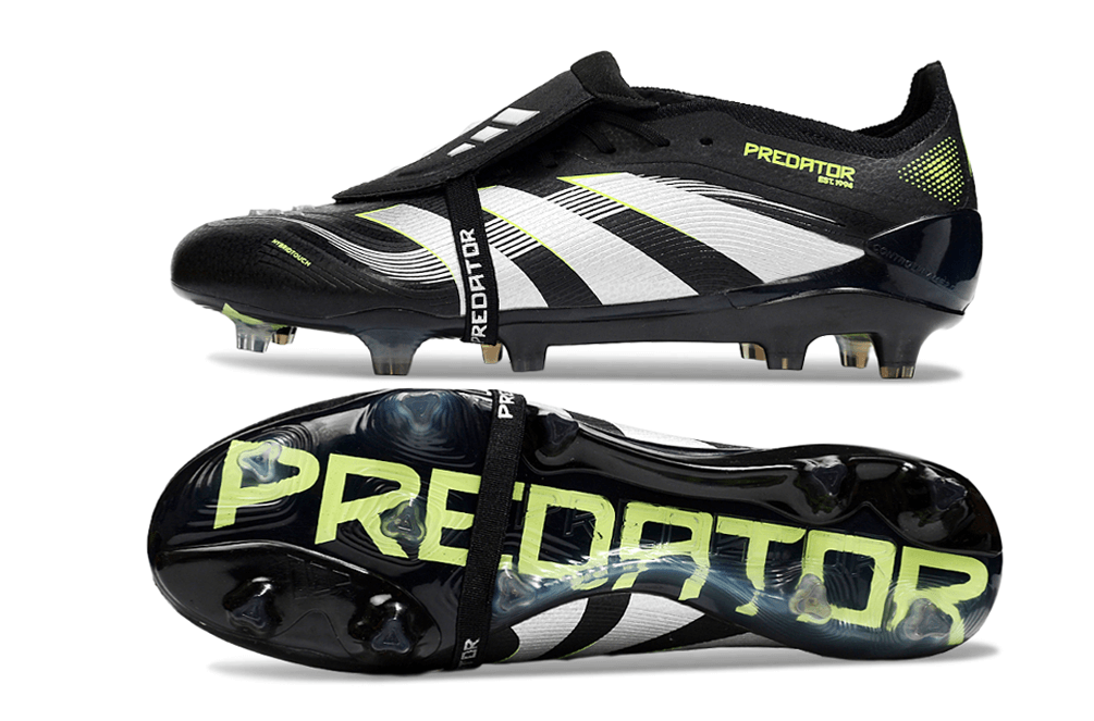 Chuteira Adidas Predator Elite Fold-Over Tongue FG - Preta, Verde e Branca OLYMPIC STORE foi desenvolvida para jogadores que procuram controlo absoluto, potência e precisão em campos de relva natural. Este modelo foi pensado para o futebol moderno e competitivo, sendo ideal para atletas que gostam de assumir o jogo, dominar o ritmo e influenciar cada lance com confiança.
