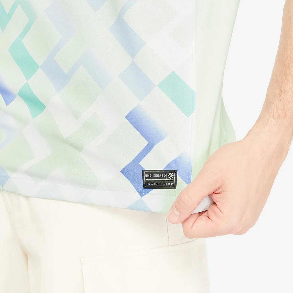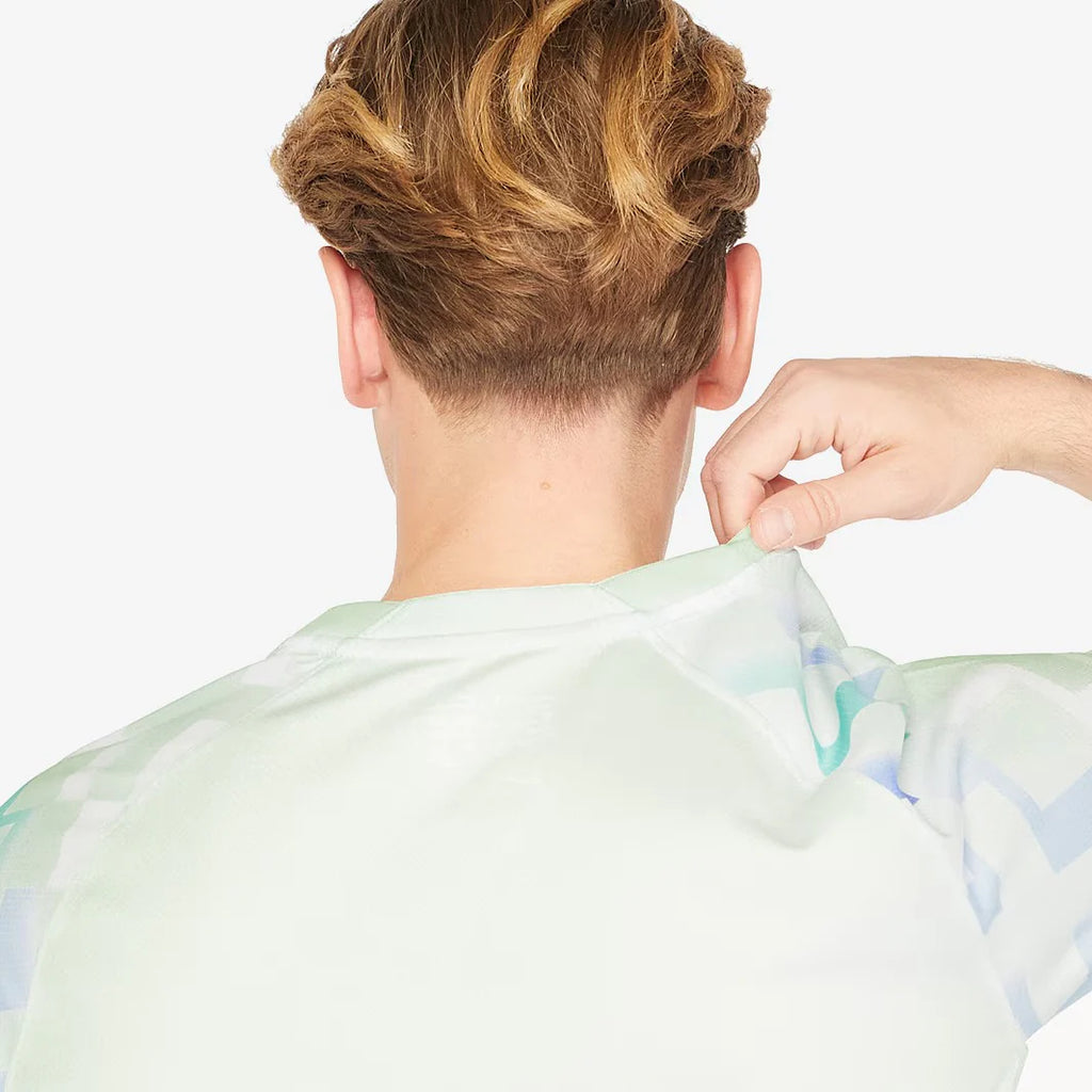 A camisola secundária da Inter de Milão 2025/26 junta o melhor da tradição milanesa à inovação. Com base branca e um padrão gráfico artesanal em azul-claro no peito e nas mangas, esta camisola celebra o design têxtil italiano — referência à moda, cultura e identidade de Milão. Uma verdadeira peça de colecção com alma e história.