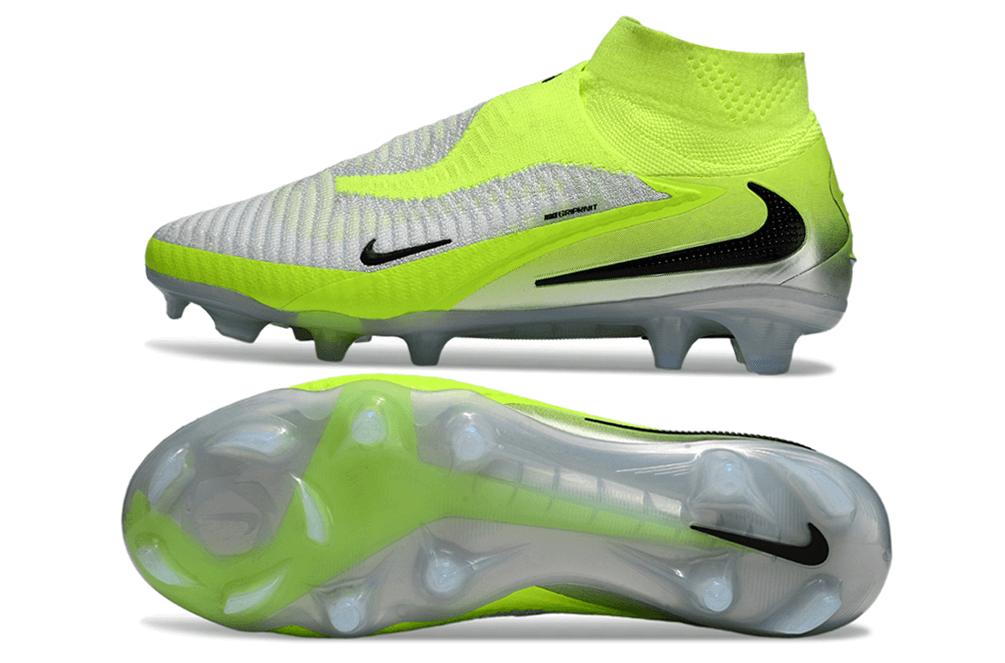 Chuteira Nike Phantom 6 Elite FG - Verde e Branca A Chuteira Nike Phantom 6 Elite FG combina tecnologia de ponta com design inovador para elevar seu desempenho em campo. Desenvolvida para jogadores que buscam precisão e controle absoluto, esta chuteira apresenta uma estrutura anatômica que se adapta perfeitamente ao seu pé, garantindo conforto durante toda a partida. O sistema de tração FG (Firm Ground) oferece estabilidade excepcional em gramados naturais, permitindo mudanças de direção rápidas e seguras. A sola foi otimizada para proporcionar aderência máxima sem comprometer a mobilidade, essencial para jogadores que dependem de agilidade e velocidade. A combinação de cores verde e branca reflete um design moderno e sofisticado, mantendo a identidade visual premium da Nike. O material superior de alta qualidade garante durabilidade e resistência ao uso intenso, enquanto a tecnologia de amortecimento protege seus pés durante impactos. Ideal para futebolistas profissionais e amadores que não abrem mão de qualidade, esta chuteira é investimento seguro em seu desenvolvimento atlético. Compatível com diferentes tipos de pé e estilo de jogo, a Phantom 6 Elite FG é escolha confiável para competições e treinos exigentes. Eleve seu jogo com tecnologia Nike de excelência comprovada.