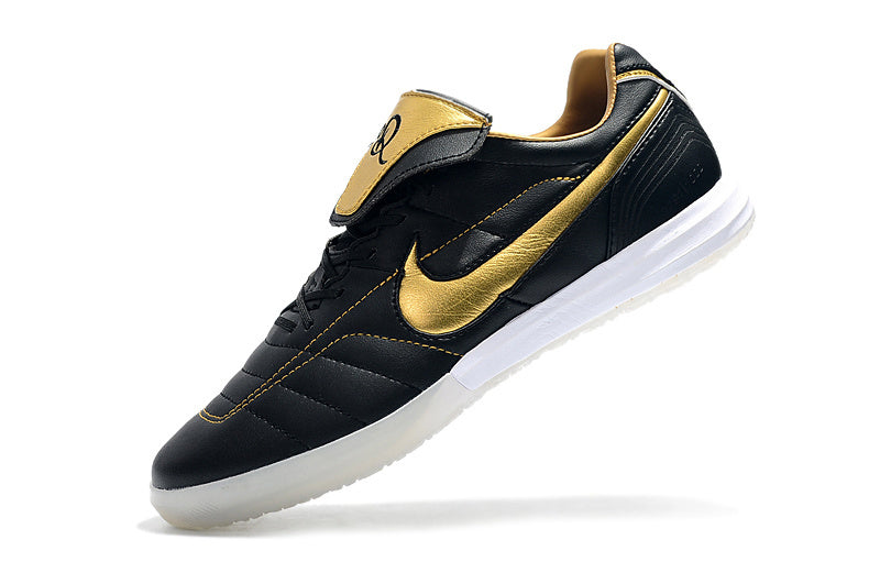 # Chuteira Futsal Tiempo Legend Elite IC "Ronaldinho" Preta Domina o court com a Chuteira Futsal Tiempo Legend Elite IC "Ronaldinho" Preta, a escolha perfeita para jogadores que buscam excelência e controlo total. Inspirada na lendária carreira de Ronaldinho, esta chuteira combina tecnologia de ponta com design clássico que honra um dos maiores talentos do futsal mundial. A sola IC (Indoor Court) foi especialmente desenvolvida para superfícies de madeira e cimento, oferecendo aderência superior e estabilidade em mudanças de direção rápidas. O corte baixo proporciona liberdade de movimento e conforto durante toda a partida, enquanto o ajuste anatómico garante que o pé fica bem fixo sem comprometer a circulação. Fabricada com materiais premium, a Tiempo Legend Elite assegura durabilidade excepcional mesmo com uso intensivo. A tecnologia de amortecimento integrada reduz o impacto a cada passo, permitindo que se concentre no jogo sem fadiga prematura. Ideal para jogadores de futsal de todos os níveis que valorizam qualidade, performance e um toque de história do desporto. A cor preta oferece versatilidade estética, combinando com qualquer equipamento de equipa. Eleve o seu jogo com uma chuteira que une tradição, inovação e pura qualidade. A Tiempo Legend Elite IC é o investimento certo para quem leva o futsal a sério.