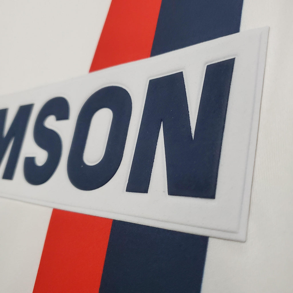 PSG Away 02/03 Retro branco offOLYMPIC STORE é uma camisola icónica que revive uma das épocas mais memoráveis do clube parisiense, combinando nostalgia, elegância e identidade histórica. Inspirada no equipamento alternativo da temporada 2002/2003, esta versão retro destaca-se pelo tom branco off, oferecendo um visual clássico e intemporal para verdadeiros apreciadores de futebol e coleccionadores.